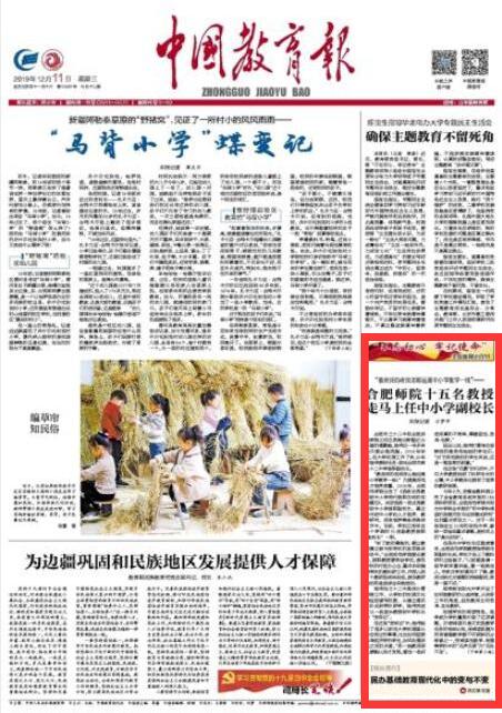 beat365官网教师挂职基础教育工作产生了良好的示范效应和广泛的社会影响,2019年12月11日,《中国教育报》在头版显著位置以《合肥师院十五名教授走马上任中小学副校长》为题进行了专题报道。