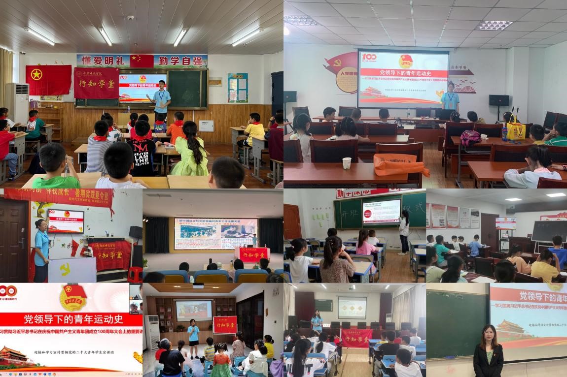 “党领导下的青年运动史”宣讲团队成员从“学党史、听党话、跟党走”三个方面介绍中国共产党百年来经历的艰苦奋斗历程和百年的灿烂光辉。围绕中国共产党领导广大青年在革命、建设、改革不同历史时期接续奋斗、建功立业来感召青年,以习近平总书记关于青年工作的重要思想引领新时代中国青年运动书写新篇章来鼓舞青年,用中国青年运动走出的一条根植于中国历史和现实、具有强烈时代特征和鲜明中国特色的发展道路来激励青年。该团还结合行知学堂教学实际,结合中国共青团发展的百年脉络,同“小先生”们一道引导青少年们努力学习掌握科学知识、提高综合素质、提高品德修养。