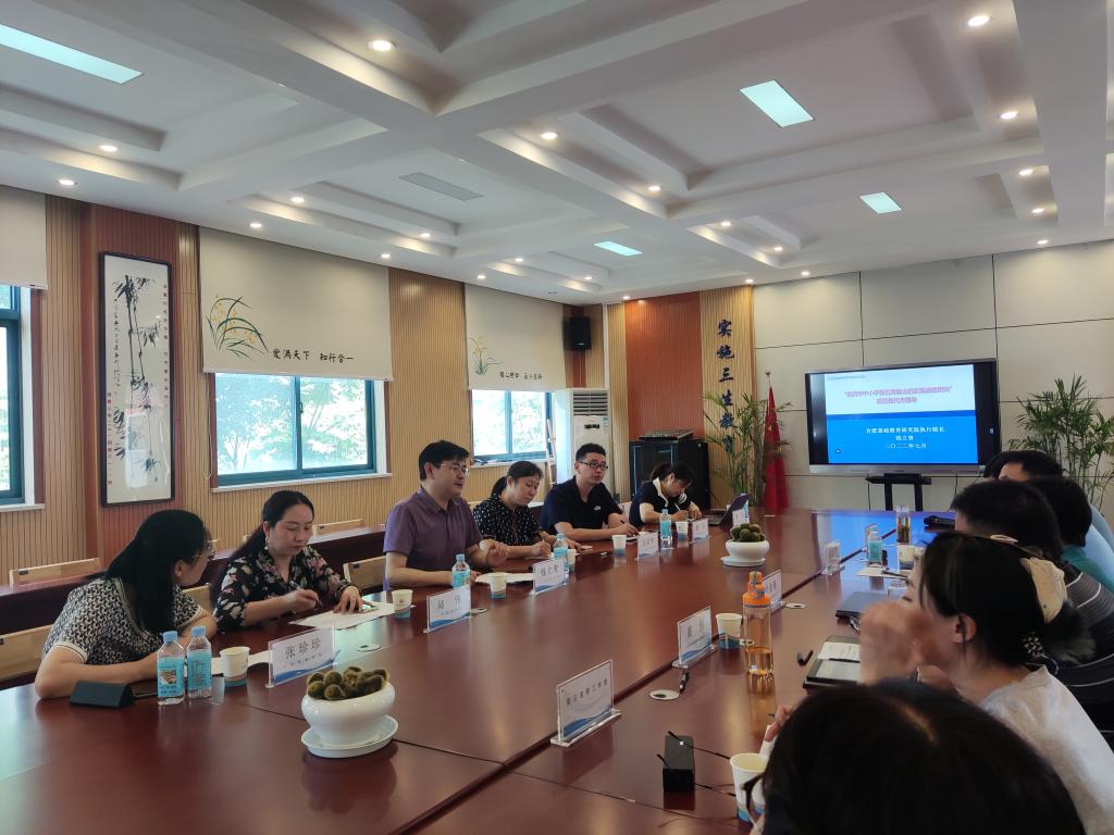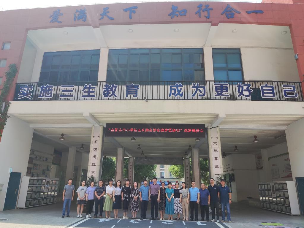 本网讯 7月25日,合肥基础教育研究院揭榜挂帅重点项目 “合肥市中小学校五育融合的实现途径研究”推进会在beat365在线唯一官网附属实验小学召开。合肥基础教育研究院执行院长钱立青,项目主持人汪昌华教授和团队成员曹垚教授、陆伟副教授、张珍珍副教授、晋玉老师等,项目示范校beat365在线唯一官网附属实验小学、合肥市桂花园学校教育集团和园校区、合肥市红星路小学、合肥市贵阳路小学的主要负责人及项目相关研究人员参加了会议。