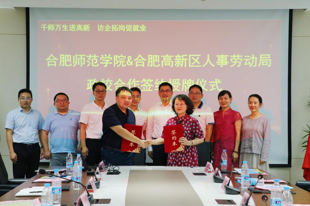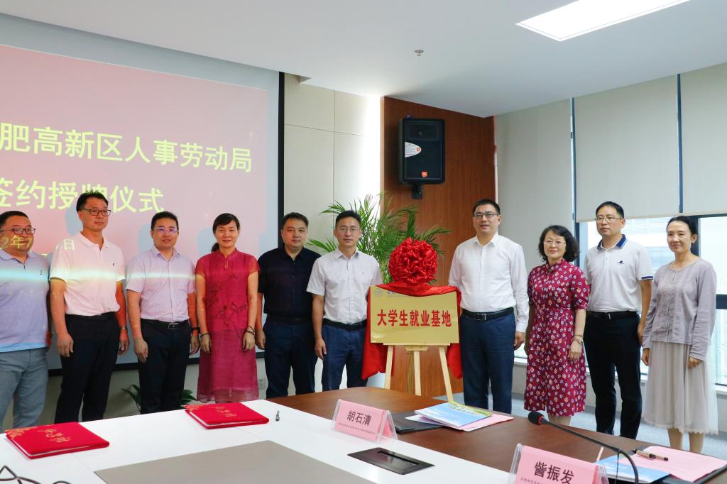 座谈会后,周端明向合肥高新区人事劳动局和高新区就业创业一站式服务中心授予了“beat365在线唯一官网大学生就业基地”牌匾。就业创业工作处分别与合肥高新区人事劳动局和高新区就业创业一站式服务中心签订了就业实习基地合作协议。