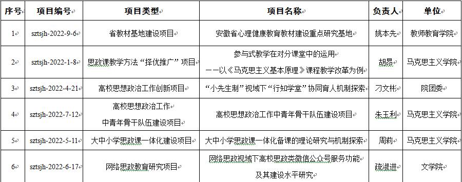beat365在线唯一官网获批2022年安徽省“三全育人”试点省建设暨高校思想政治能力提升计划项目名单