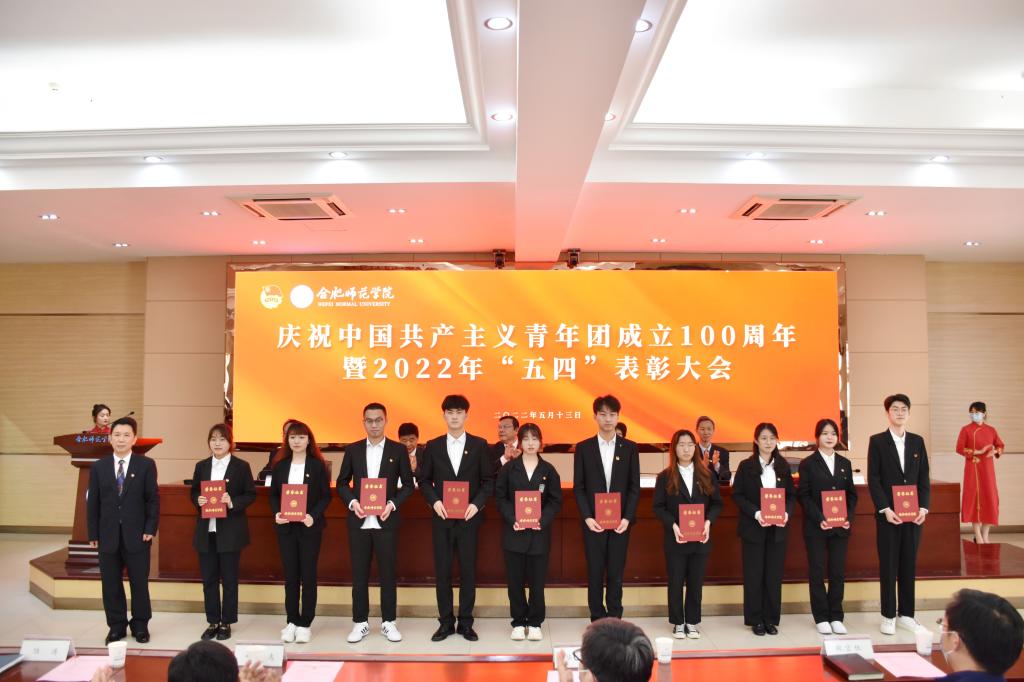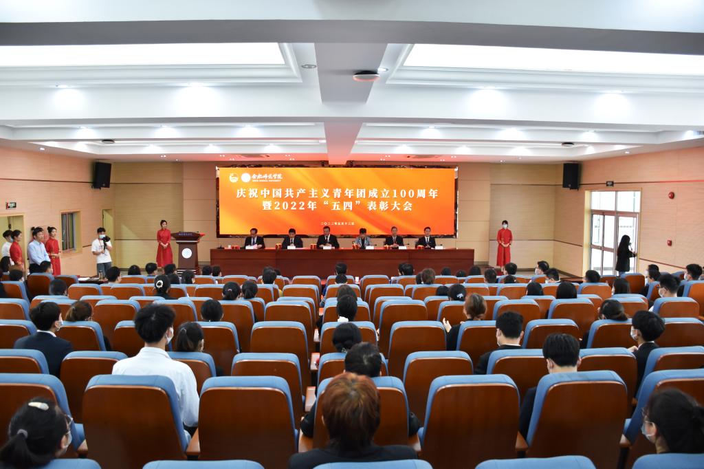 本网讯 5月13日上午,学院在锦绣校区学术报告厅隆重举行庆祝中国共产主义青年团成立100周年暨2022年“五四”表彰大会。院党委书记徐成钢,党委副书记、院长方东玲,党委副书记吴昕春,副院长谢阳群,副院长姚本先,纪委书记徐文林出席大会,院学生工作领导组全体成员,各二级学院党委副书记、团委书记、辅导员及团员青年代表200余人参加大会。吴昕春主持会议。