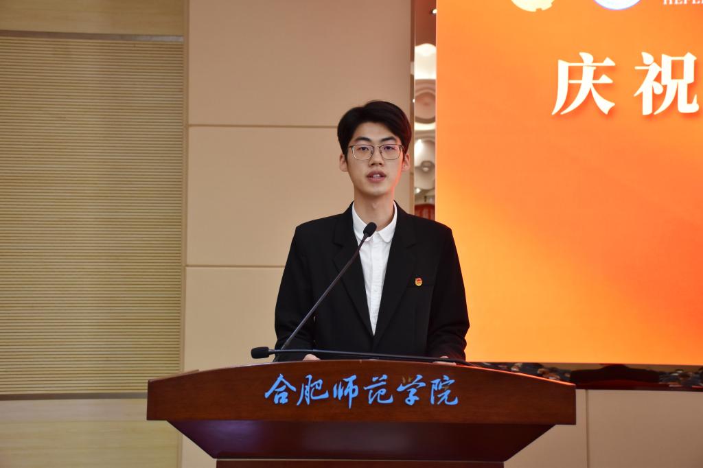 安徽省优秀共青团员、文学院2019级汉语国际教育专业付恩波同学作为获奖学生代表发言,表示将珍惜荣誉、牢记使命、砥砺前行,不负党和人民的殷切期望,传承伟大五四精神,肩负时代重任,勤奋踏实学习,认真努力工作,争取新的成绩。