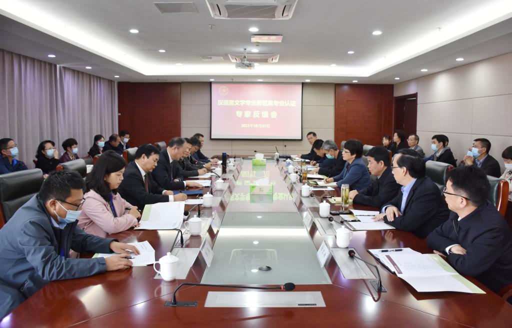本网讯 10月27日上午,学院在锦绣校区行知楼2008会议室召开汉语言文学教育部师范类专业第二级认证专家意见反馈会。以盐城师范学院校长方忠教授为组长的专家组,安徽省教育厅高教处负责同志,我院党委副书记、院长方东玲,党委副书记吴昕春,副院长谢阳群、姚本先、曹卓良,纪委书记徐文林,相关职能部门主要负责人,文学院领导班子及专业负责人,开设师范专业的二级学院院长参加了会议。会议由专家组组长、盐城师范学院校长方忠教授主持。