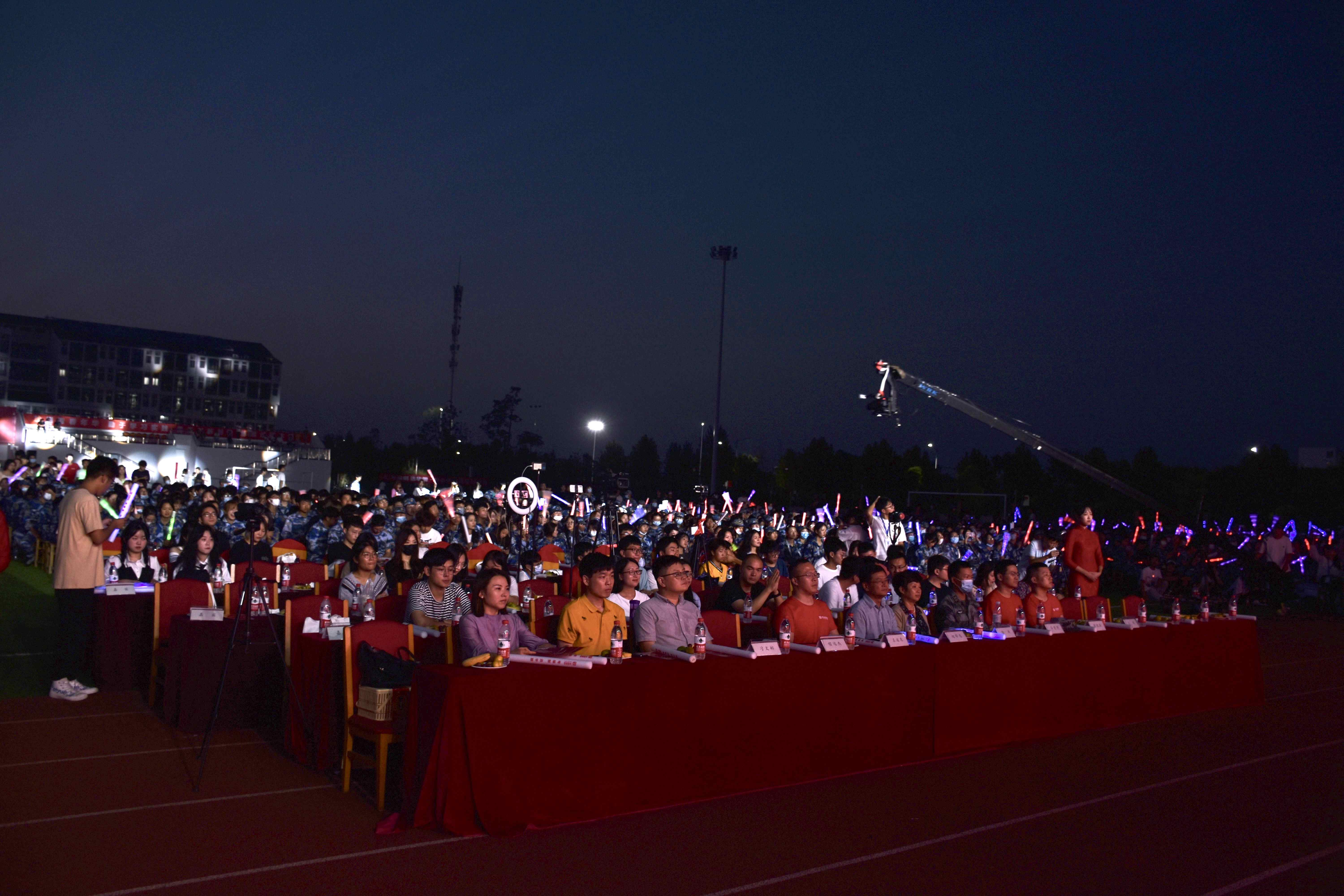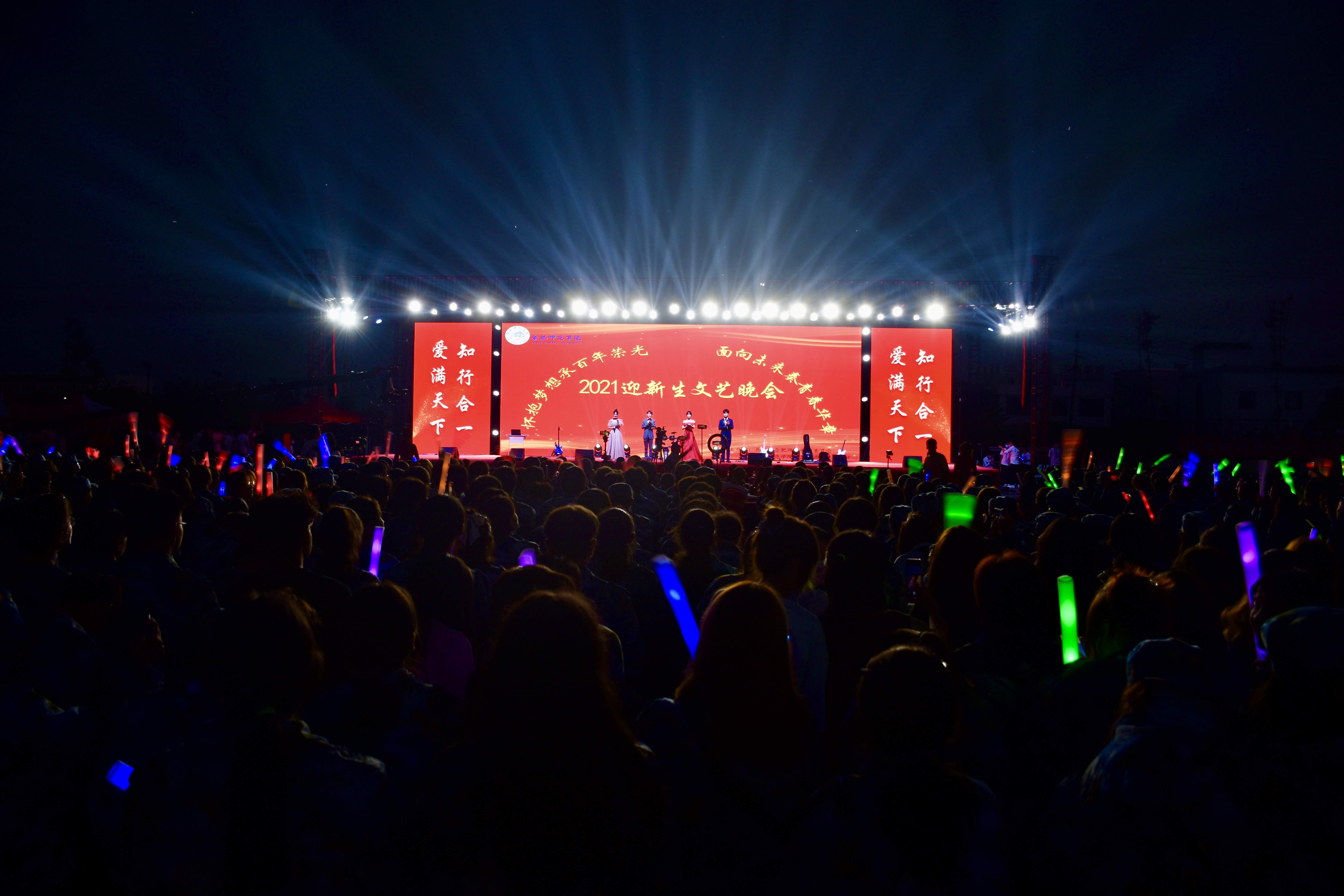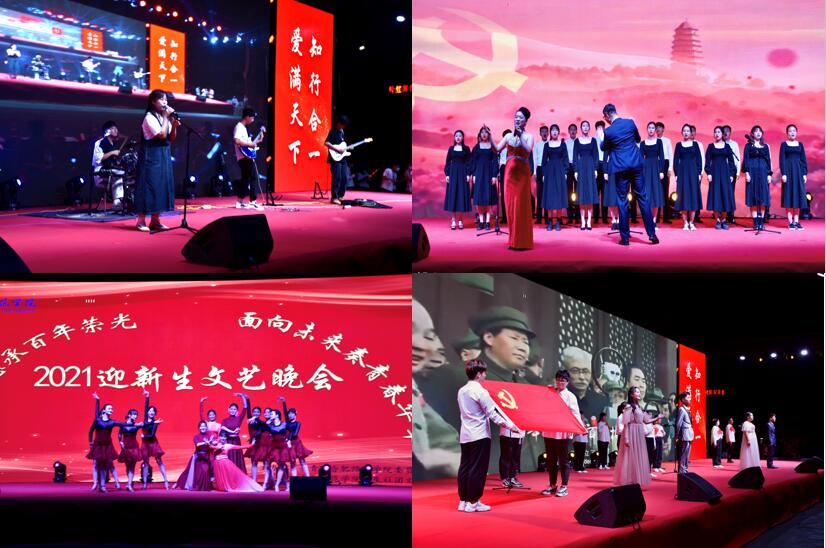 本网讯 9月16日晚,由院团委主办,学生社团文化服务中心承办的2021迎新生文艺晚会在滨湖校区体育场隆重举行。此次晚会以“怀抱梦想承百年荣光,面向未来奏青春华章”为主题,带来了一场缤彩纷呈的视听盛宴。党委委员、统战部部长、滨湖校区综合管理办公室主任赵帮恚,学生工作部部长陆涛,团委副书记刁文彬,陆军炮兵防空兵学院学员六大队18队中校队长马贤同,各二级学院分团委书记和2021级新生辅导员代表与2021级新生到场观看晚会,学生社团文化服务中心官方QQ对晚会进行在线直播。