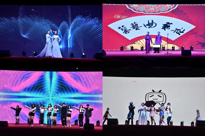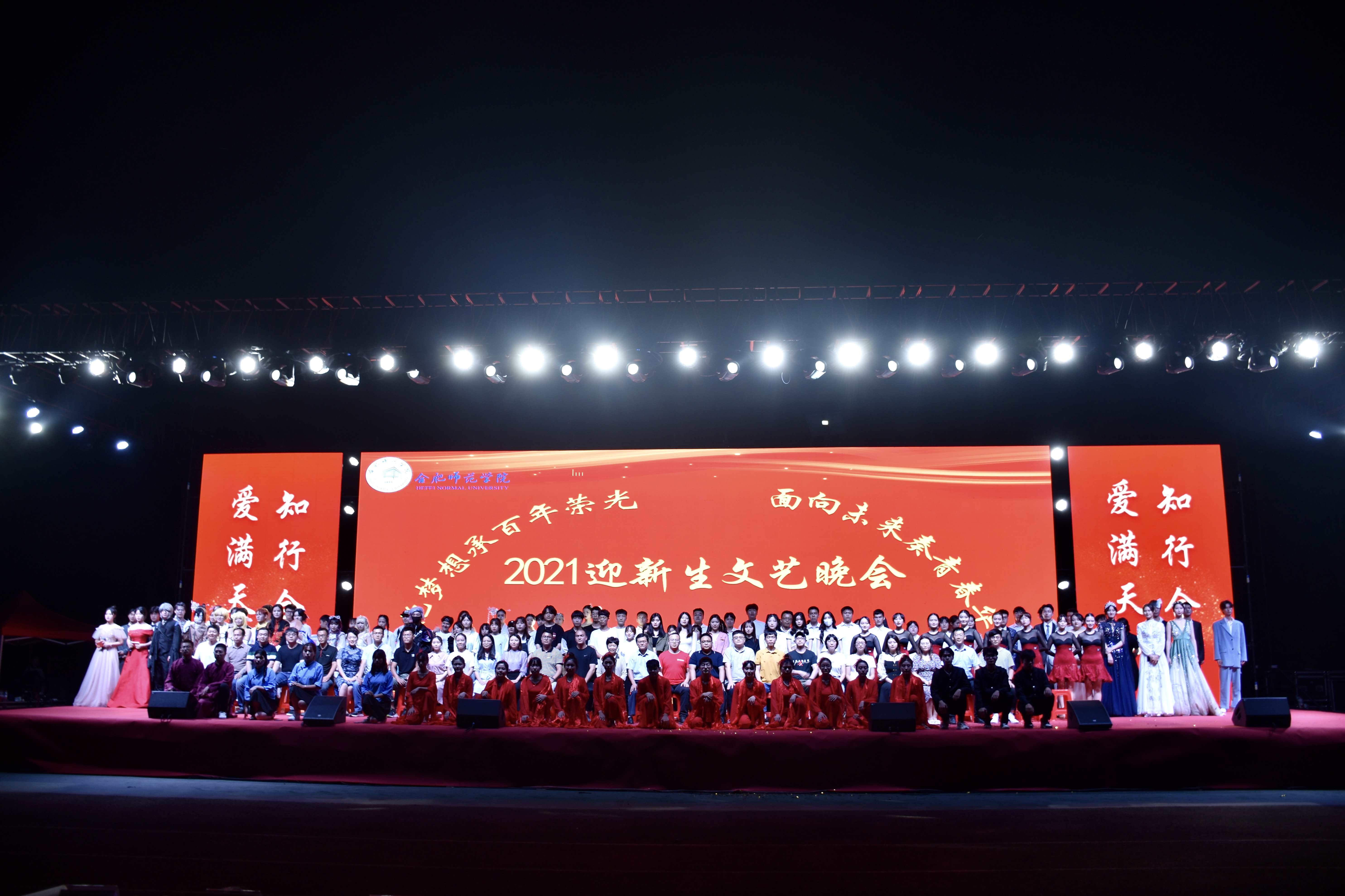 在弦舞吉他社朝气蓬勃的歌声中,晚会正式拉开了序幕。舞蹈《我爱你中国》舞出青春风采,也舞出对祖国的热爱。合唱《青春之我》和《祝福祖国》,气势磅礴、整齐有力,彰显了新时代合师青年的青春风貌。朗诵《百年建党,万载荣光》声情并茂,回望百年峥嵘岁月。服装走秀《星火之纫》迎着秋风神采飞扬,展现了合师学子朝气蓬勃、积极向上的阳光形象。相声《不一样了》用诙谐幽默的语言告诉新生们如何适应大学生活。舞蹈《Waiting for you》动作优美、引人入胜,赢得台下观众阵阵掌声。舞台剧《星之梦》融入动漫元素,火热的青春激情在光与影的节拍中悦动。街舞《嘻哈Big boom》,劲爆的节奏伴随强劲有力的舞姿将整场晚会氛围推向了高潮。话剧《破晓》以分幕式地演绎呈现了五四运动时期爱国青年的风采,燃起青年学子内心共鸣。舞蹈表演《东方红》用婀娜的舞姿向展现了东方舞的绝妙韵味。歌曲《蜡炬荣光》以歌传情、以歌达意,向教育工作者表达尊敬之情。滨湖校区全体新生辅导员最后登台,用真诚的寄语向新生表示欢迎,表达对同学们未来大学生活的美好期望,为晚会画上圆满的句号。