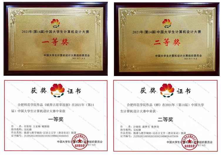 本网讯 近日,第十四届中国大学生计算机设计大赛沈阳决赛区总决赛在阜阳落下帷幕。经过紧张激烈的专家评审和线上答辩,教师教育学院任彤彤、王亚梅、顾锦锦同学,计晓彤、潘梦雪、鲁梦琦同学,在吴皖赣老师指导下,荣获微课组一等奖和二等奖,此外,吴晓康、严怡、杨梦璐同学荣获三等奖。