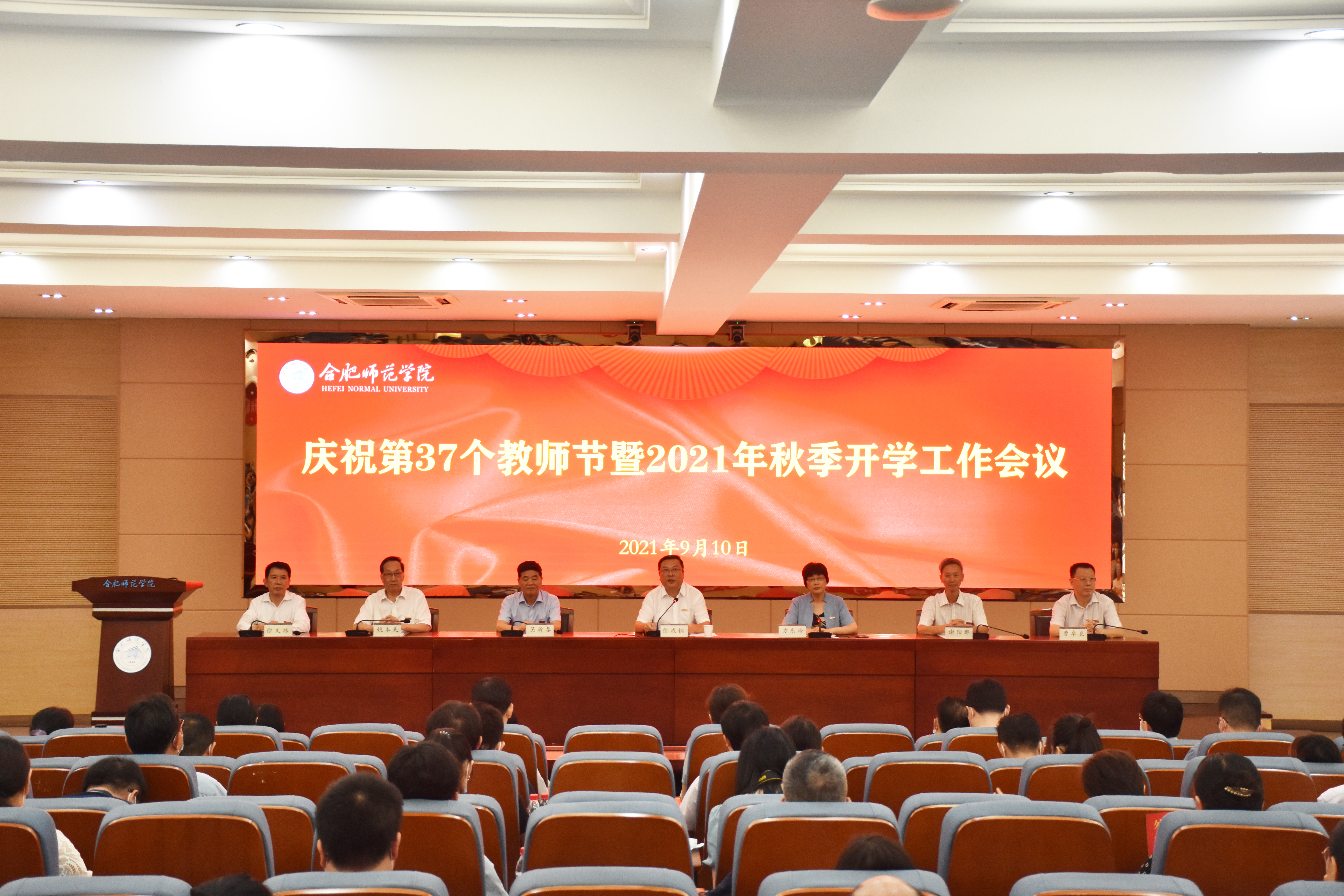 本网讯 为深入学习贯彻习近平总书记“七一”重要讲话精神,表彰学习先进,回顾上半年工作,动员部署下半年重点工作,9月10日下午,学院庆祝第37个教师节暨2021年秋季开学工作会议在锦绣校区学术报告厅召开。院党委书记徐成钢讲话,党委副书记、院长方东玲主持会议,党委副书记吴昕春,副院长谢阳群、姚本先、曹卓良,纪委书记徐文林出席会议,处级干部、正高职称人员、“两委会”委员、受表彰人员、拜师仪式教师代表,新进教职工参加会议。