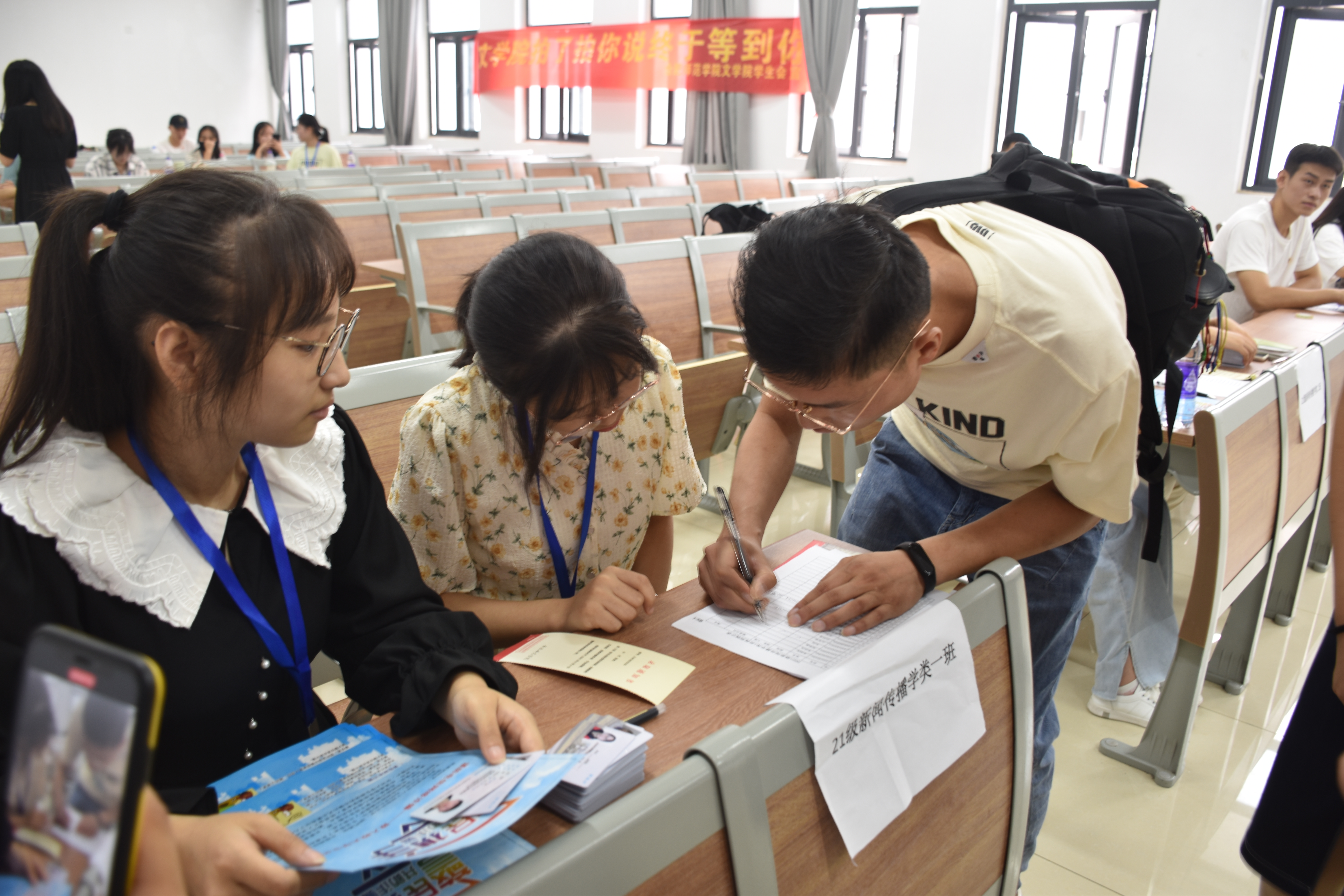 “因为自己淋过雨,所以想着要为别人撑伞。我从生病一路走来,得到了很多帮助,其中不乏媒体对我的帮助。在与媒体交流过程中,我发现自己爱上了新闻传播专业,觉得自己以后从事这方面的工作,可以用自己的力量帮助到更多的人。”去往食堂的路上,杜程分享了自己选择新闻传播类专业的初衷,并焦急的询问起教材发放事宜。