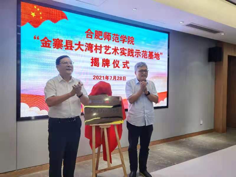 本网讯 为深入贯彻习近平总书记考察安徽重要讲话精神,深入开展党史学习教育,深化学院与地方政府合作关系,助力乡村振兴和产业发展,7月28日,我院与金寨县人民政府在金寨干部学院举行“beat365在线唯一官网金寨县大湾村艺术实践示范基地”揭牌仪式。我院党委书记徐成钢,金寨县委书记汪冬出席揭牌仪式。金寨县经济技术开发区、教育局、花石乡等单位主要负责人以及学院宣传部、教务处、艺术传媒学院等负责同志参加揭牌仪式。仪式由金寨县委副书记朱健主持。