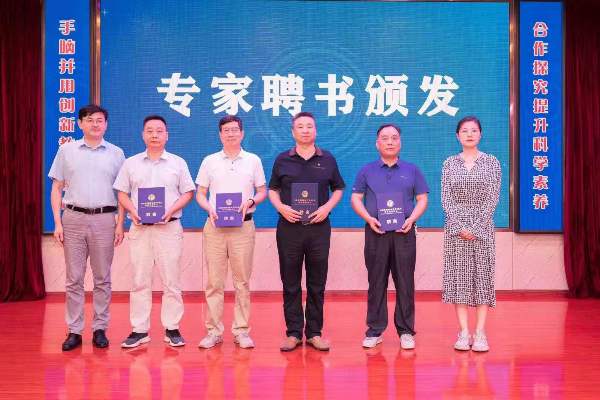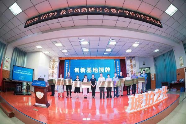 为扎实推进项目实施,加快成果转化,促进产学研合作高效致用,项目工作委员会在全省范围内遴选了一批创新基地,钱立青和陈永梅为合肥市一六八玫瑰园教育集团等12所《科学》教学创新基地授牌。