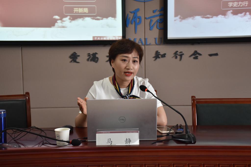 马静用生动的语言、真实的案例和极具感染力的语言赢得了同学们的阵阵掌声。物理与材料工程学院2019级材料科学与工程专业鲍振洋同学表示,“我们坚信,在中国共产党的坚强领导下,青少年一定能以一往无前的奋斗姿态、风雨无阻的精神状态,继续创造令人刮目相看的人间奇迹,继续向着实现中华民族伟大复兴的光辉目标昂扬进发!”文学院2018级编辑出版学专业盛鹏同学说:“以史为镜,可以知兴替。只有深入学习、准确理解党的奋斗史、新中国的发展史,才能弄清楚党从哪里来、要往哪里去;才能深刻体会今天幸福生活来之不易;才能常怀忧党之心、为党之责、强党之志。”音乐学院2019级音乐表演专业吴行同学认为,“作为新时期的青年,我们应当肩负起建设祖国、保卫祖国的重任,这就要求我们要有过硬的本领,同时要有坚定的立场和正确的思想认识,树立正确的科学的奋斗目标,并为实现目标而积极努力。”