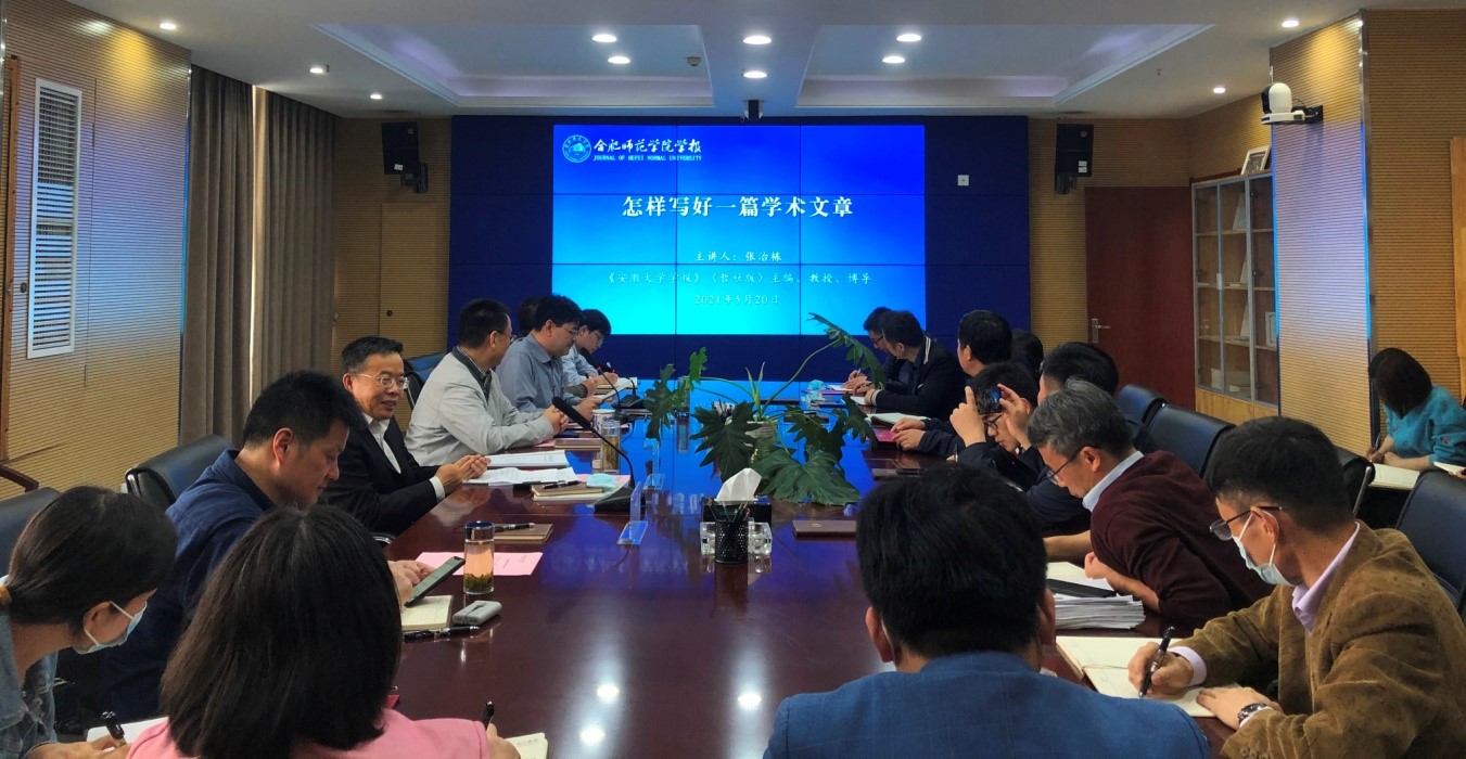 本网讯 为深入学习贯彻党的十九届五中全会精神,加强学报编辑队伍能力建设,不断提升期刊编辑质量,5月20日下午,学报编辑部在锦绣校区组织召开了编辑业务培训会。安徽省高等学校学报研究会理事长、《安徽大学学报》(哲学社会科学版)主编张治栋教授,党委委员、副院长、《beat365在线唯一官网学报》主编曹卓良教授等编委会成员出席会议。《beat365在线唯一官网学报》兼职编辑,编辑部全体人员及相关教师参加了培训会。会议由《beat365在线唯一官网学报》执行主编、编辑部主任钱立青主持。