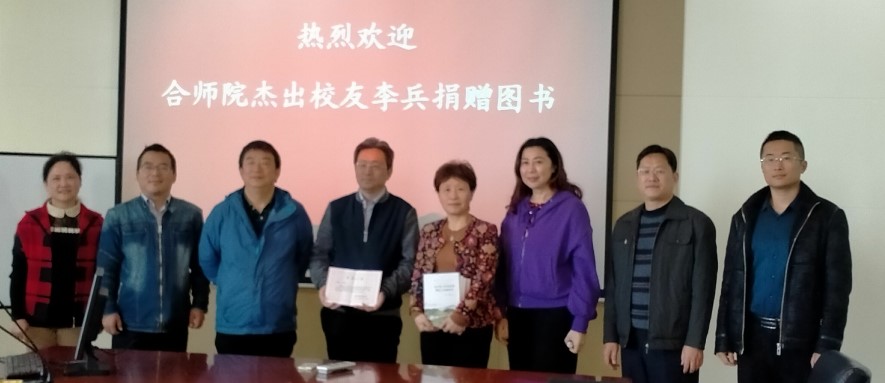 捐赠仪式在图书馆七楼会议室举行,图书馆领导和各部室主任参会。李兵与老师胡庆华、馆长吴秋芬交流了工作近况和写作历程。吴秋芬代表图书馆表达了对李兵校友的欢迎与感谢:校友向母校捐赠图书,丰富了图书馆馆藏资源,是学校宝贵的财富。图书馆将图书收录至“合师文库”,并有专门的书架,供全校师生阅读分享。(图书馆)