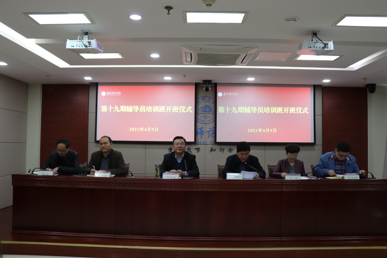 本网讯 为进一步加强新形势下学院辅导员队伍建设,提升学院思想政治工作水平,贯彻落实党史学习教育动员大会精神,不断增强“三全育人”工作实效,4月9日下午,学院在锦绣校区行知楼第三会议室举办第十九期辅导员培训班开班仪式,党委书记徐成钢出席会议并作动员讲话,宣传部、人事处、学生工作部、团委等部门负责同志,各二级学院分党委(党总支)副书记,全体辅导员,学生工作处全体人员参加会议,会议由党委副书记吴昕春主持。