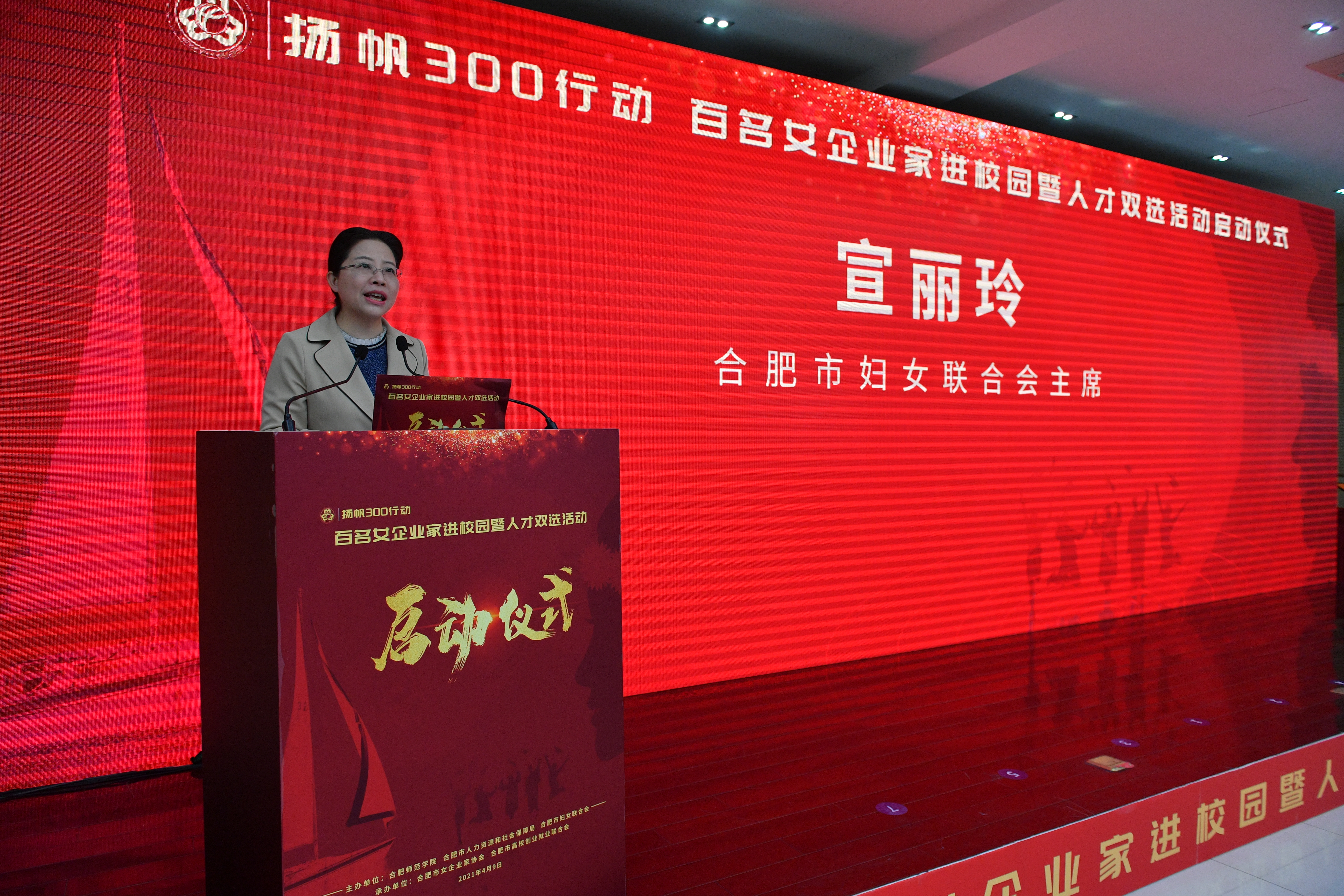 本网讯 仲春时节,万物葱茏。为全面融入地方经济社会发展,积极响应长三角一体化国家发展战略号召,充分发挥长三角区域女企业家在引领大学生创业、助推产学研创新、加快人才培养上的能动性和独特优势。4月9日下午,由beat365在线唯一官网、合肥市人力资源和社会保障局、合肥市妇女联合会主办的“扬帆300行动”百位女企业家进校园暨人才双选活动启动仪式在学院锦绣校区学术报告厅举行。省政协副主席孙丽芳、省妇女联合会主席刘苹、院党委书记徐成钢、院党委副书记、院长方东玲、合肥市人民政府副市长赵明、合肥市政协副主席姚亚妹、合肥市人力资源和社会保障局局长吴松保等相关单位领导和来自长三角50名女企业家宣讲团代表及学院150多名学生参加了活动。启动仪式由市妇女联合会主席宣丽玲主持。