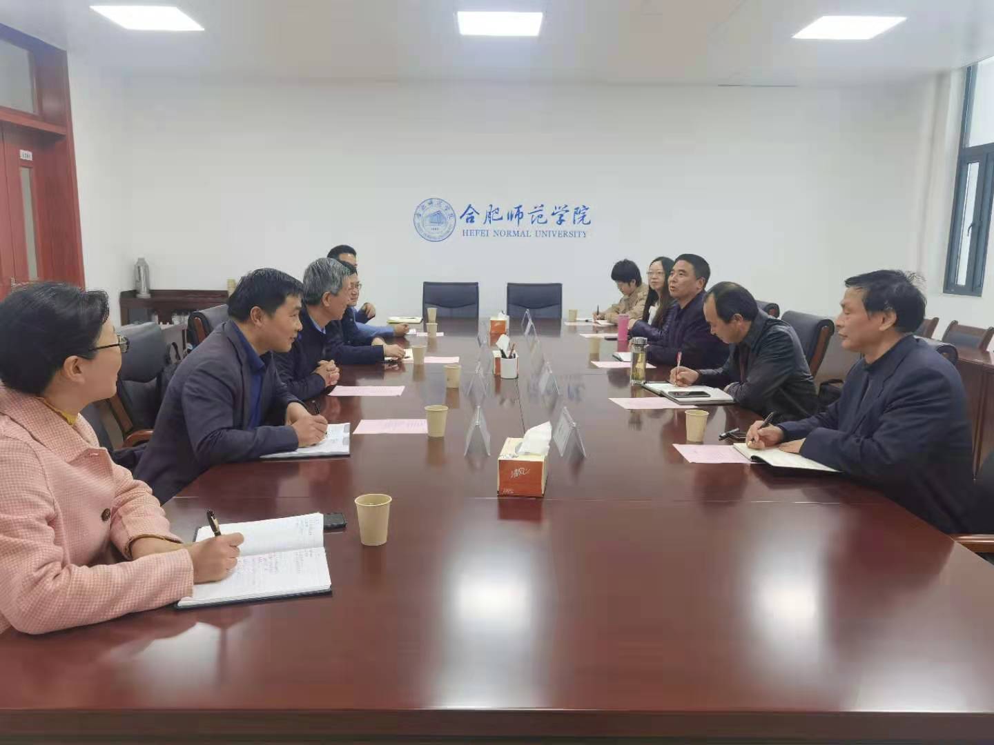 黄志圣对学院的热情接待和交流介绍表示感谢,他表示,两校在办学历程中有着良好的交往和友谊,滨湖校区坐落在巢湖之滨,地缘相近,人文相亲,希望双方进一步加强交流与合作,分享工作经验与成果。(滨湖校区综合管理办公室、基建办:胡强胜)