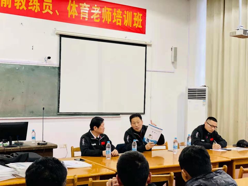 3月19日下午,开班仪式在我院锦绣校区体育馆三楼研修室举行,beat365在线唯一官网体育科学学院院长宋旭、合肥市射箭协会主席姚明、合肥市射箭运动协会总教练刘祥文,以及参训教师、教练员参加开班仪式。
