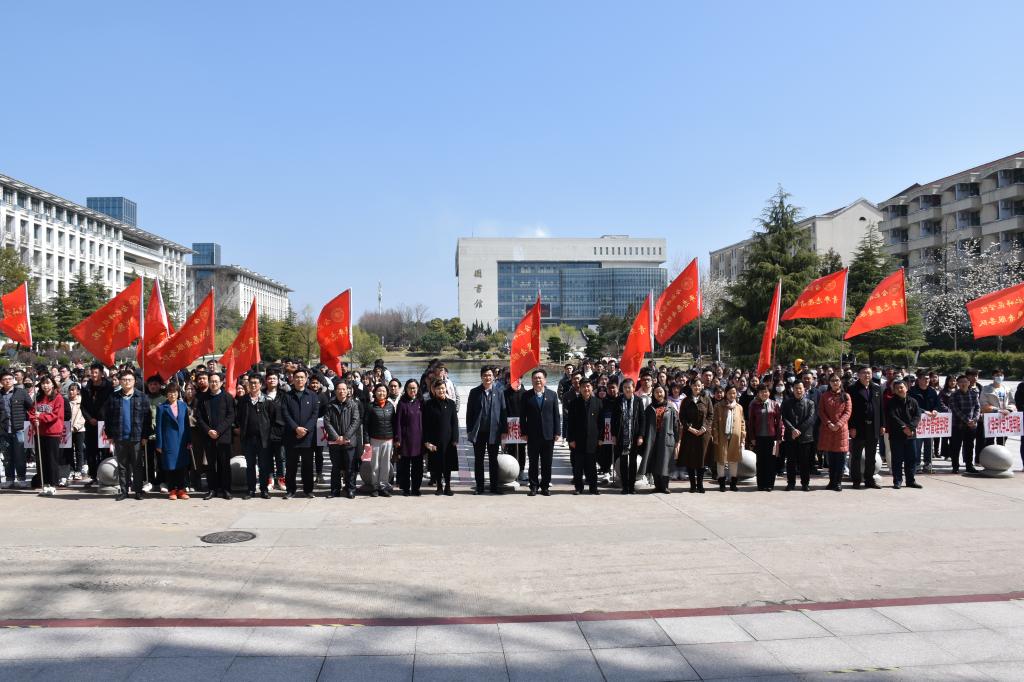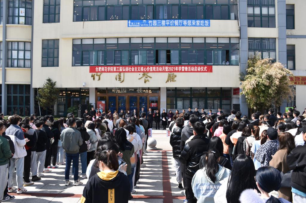 本网讯 3月4日,学校第三届弘扬社会主义核心价值观活动月暨2021年学雷锋活动启动仪式在锦绣校区生活广场举行。校党委书记徐成钢,校党委副书记吴昕春,团合肥市委书记童友好,校办公室、党委宣传部、学生工作部、教务处等单位主要负责人,各二级学院党团负责同志,青年志愿者代表近400人参加启动仪式。校团委副书记刁文彬主持仪式。