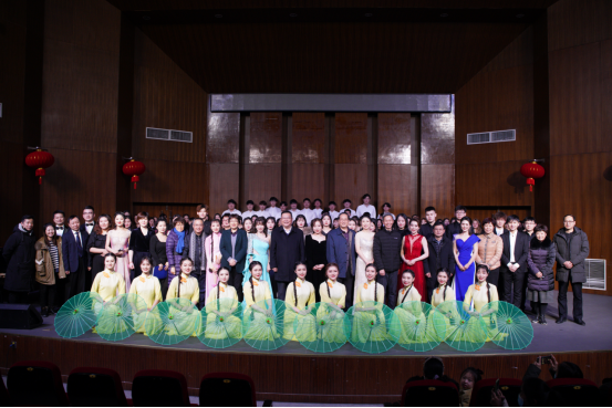 演出结束,校领导亲切看望了全体演出人员并与大家合影留念。
