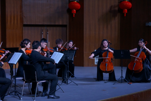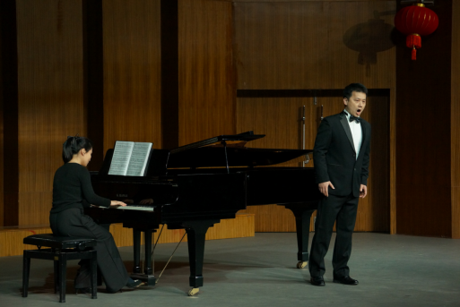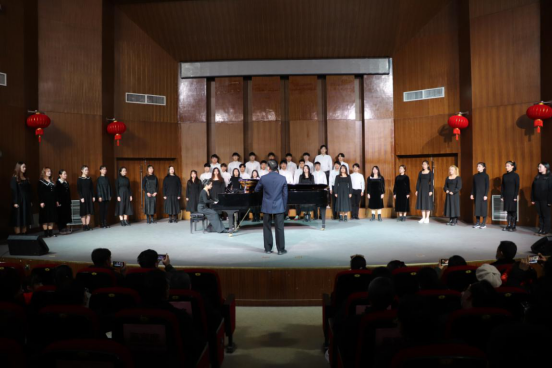 音乐会在室内乐合奏《G大小弦乐小夜曲第一乐章》中拉开帷幕;女生独唱《曙色》用歌声描绘了一幅中华民族“走过长夜、走过坎坷、走进曙色”的壮丽画卷;萨克斯独奏《查尔达什》展现出一幅匈牙利人民生活的美丽民俗画面;女声独唱《我的深情为你守候》既优美婉转又慷慨激昂,表现出强烈的爱国情怀;单簧管四重奏 《阿拉贡舞曲》采用的是古典序曲与奏鸣曲式交汇的一种曲式,具有浓郁的西班牙风格;男声独唱《关雎》以朗朗上口的语句、浅显易懂的文字为我们讲述了一个爱情故事;《d小调第一钢琴三重奏》用钢琴的华丽、长笛的优雅、大提琴的伤感演奏出音乐旋律的灿烂优美;男声独唱《你赢得了诉讼》从气息、速度、高音、咬字、情感等方面将歌曲所表达的情感完美呈现;古筝重奏《翡翠》通过和弦色彩的变化和动感十足的节奏以及人声的哼唱,生动展现了西南民族风情;舞蹈《雨打芭蕉》诠释了一群花季少女,手持雨伞,欢乐戏雨的场景,尽显岭南音乐的独特韵味与妩媚旖旎的南国风光;歌曲《绣红旗》让人热血沸腾、精神振奋,歌词气势磅礴,用歌声表达了对祖国的深厚情感;竹笛独奏《竹石图》描写破岩之中的劲竹,赞颂其顽强而执着的性格、傲然挺立的品格;女声独唱《叶尔羌河》动听的旋律让现场观众领略了异域风情,也掀起了音乐会的高潮。最后,在音乐学院合唱团演唱的歌曲《如果明天就是下一生》、《我爱你中国》中,整场音乐会华美落幕。
