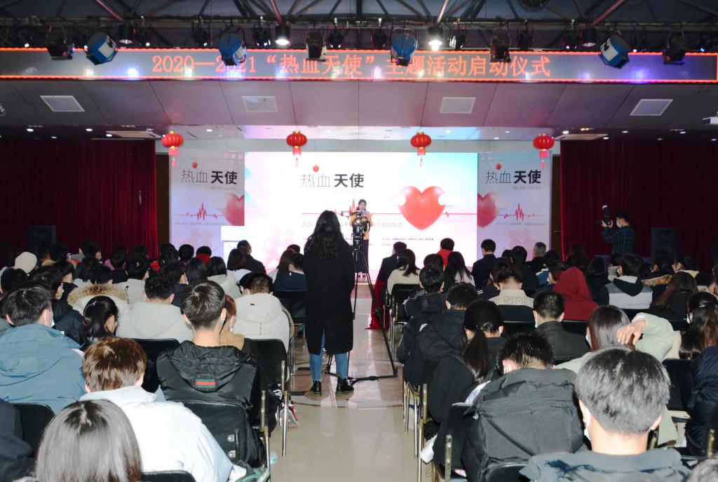 本网讯 12月28日下午,2020-2021“热血天使”主题活动启动仪式在beat365官网锦绣校区大学生活动中心举行。安徽省红十字会党组成员、秘书长曹芦松,beat365官网党委副书记吴昕春,校团委副书记刁文彬,安徽省血液管理中心监督管理科科长李瑞,合肥市卫生健康委员会副书记、副主任张晓峰,合肥市红十字会专职副会长刘波,合肥市中心血站党委书记、站长胡晓玉,安徽电视台主持人陈茜、王乐乐,新浪安徽总经理胡静及beat365官网学生代表近200人参加启动仪式。