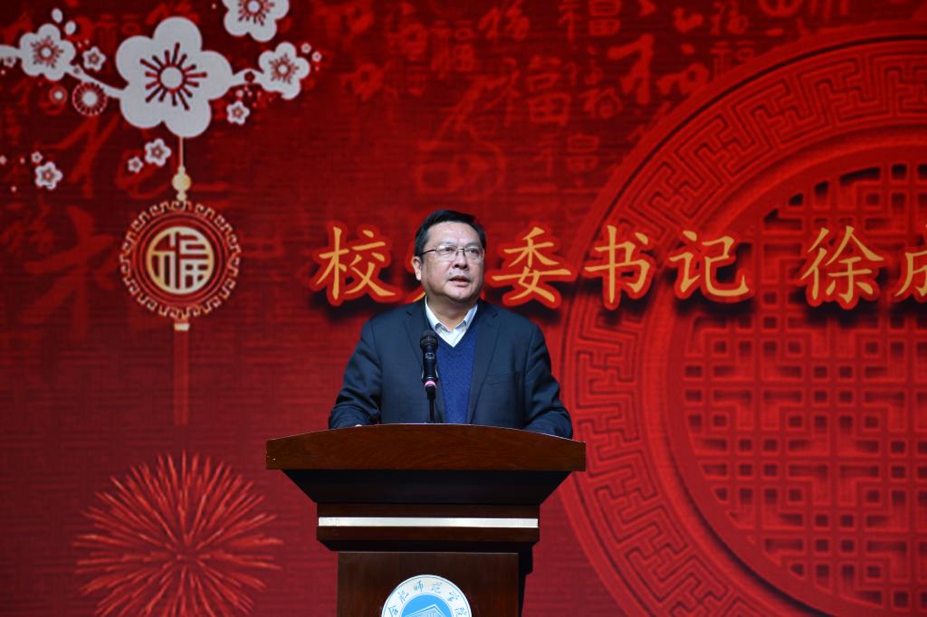 徐成钢代表学校发表了热情洋溢的新年贺词,向一年来勤奋学习、努力工作的全校师生致以美好的祝福,向精心组织、积极参与本届科技文化艺术节的老师和同学们致以诚挚的问候。他指出,2020年是学校收官“十三五”、谋划“十四五”、统筹推进常态化疫情防控与党建事业发展的不平凡之年。全校师生风雨同舟、砥砺前行,抗疫情、抓党建、促发展,各项工作取得了新的进展和成就。学校广大团学组织和青年学生在“行知学堂”、“三优”创建、创新创业等工作和中国青年志愿服务项目大赛、挑战杯、中国大学生自强之星等活动中取得了优异成绩,展现出了昂扬风貌。新的一年,学校将坚持围绕中心抓党建,持续提升师生获得感幸福感,加快构建高质量人才培养体系,全面深化地方应用型高水平大学建设。他号召全校上下以习近平新时代中国特色社会主义思想为指导,努力用劳动筑梦、用实干圆梦,共创beat365在线唯一官网的美好未来,以扎实业绩迎接中国共产党成立100周年。