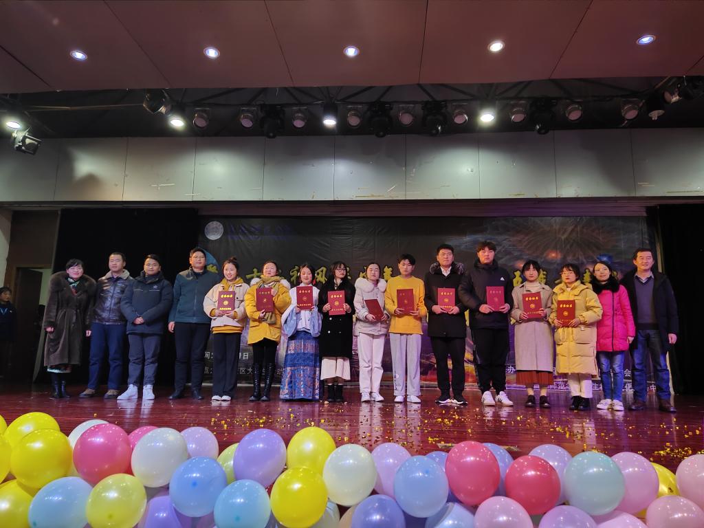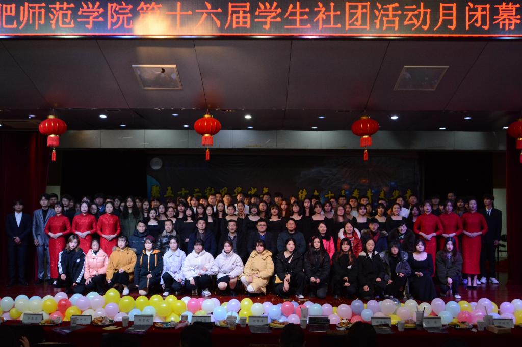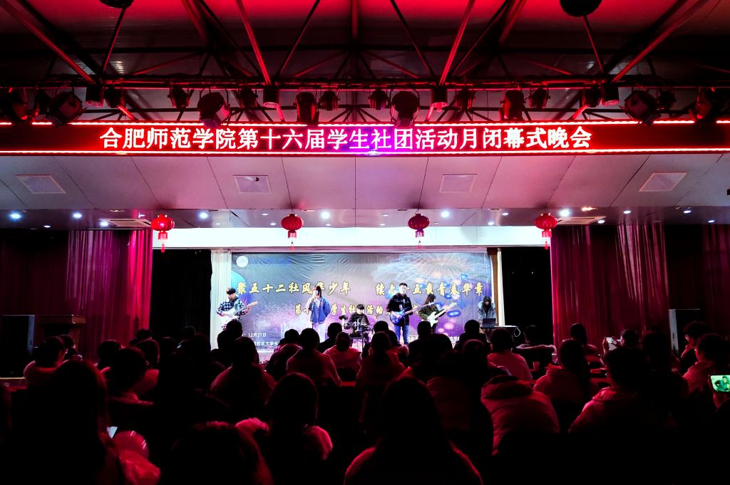 本网讯 12月21日晚,第十六届学生社团活动月闭幕式晚会于锦绣校区大学生活动中心成功举办。校团委全体人员,绿色环保协会指导老师沈章军、法律志愿服务者协会指导老师汪良敏、大学生英语协会指导老师张雪迟、大学生职业生涯规划与设计协会指导老师何晶晶、梨花雨读书社指导老师杨焕昌、踏歌汉文化协会指导老师李惠恩,各学生组织、各学生社团代表参加活动。400余名学生到场观看晚会。