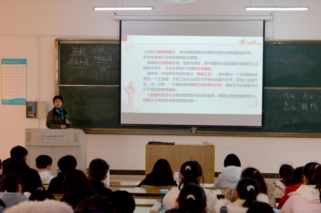 课堂讲授中,方东玲以“十四五”时期经济社会发展指导思想和必须遵循的原则为切入点,紧扣党的十九届五中全会精神,从现代化的理论逻辑和现实逻辑两个层面重点宣讲阐释了什么是现代化、中国走向现代化从“站起来”“富起来”和“强起来”三个阶段的中国道路以及我国建设社会主义现代化的路径选择和重要特征。结合当前常态化疫情防控、国际大环境影响以及同学们学习实际,方东玲鼓励同学们要抬头看路,积极关注党和国家的大政方针,特别是具有里程碑意义的党的十九届五中全会精神,找准自身未来发展的机遇和空间;要勤奋学习,坚定理想信念,练就过硬本领,主动将自身发展融入到党和国家的事业发展大局中,努力肩负起未来国家建设的重任,为实现社会主义现代化作应有的贡献。