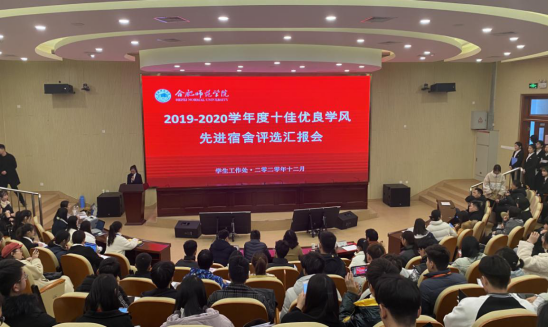 本网讯 12月9日下午,beat365官网2019-2020学年度“十佳优良学风先进宿舍”评选汇报会在滨湖校区学术报告厅举行,来自各二级学院14个优秀宿舍参选汇报,“三优”评审工作组成员、各二级学院辅导员以及学生代表200余人参加汇报会。
