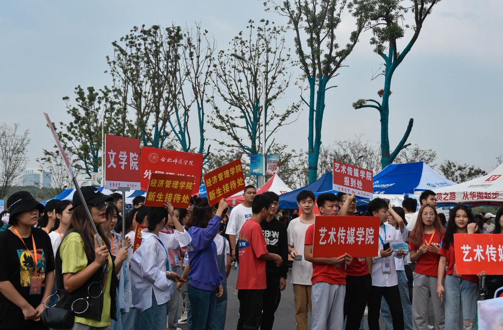 “红色的指引牌很醒目,一出站就看到了合师院的学姐学长。”“孩子在滨湖校区上车,本来担心交通会不方便,学校提供的接驳车消除了我们的顾虑。”新生和家长的认同,让每一位“接站”志愿者感到温馨。