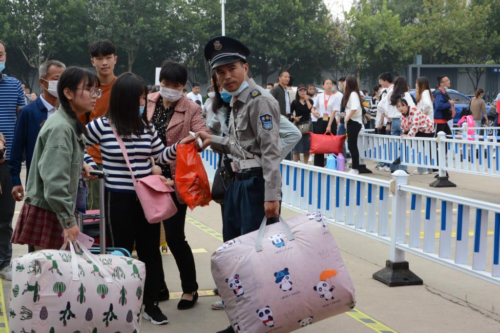 迎新日校区人流量很大,为了确保新生报到安全有序,保卫处提前做好疫情防控预案和校园安全预案,共安排保卫人员30余人。新生报到当天,保卫人员分布在校区各个角落,有的在校门口指挥交通、疏导车辆;有的在测量体温、校区巡逻,为新生引导秩序、做好指引。