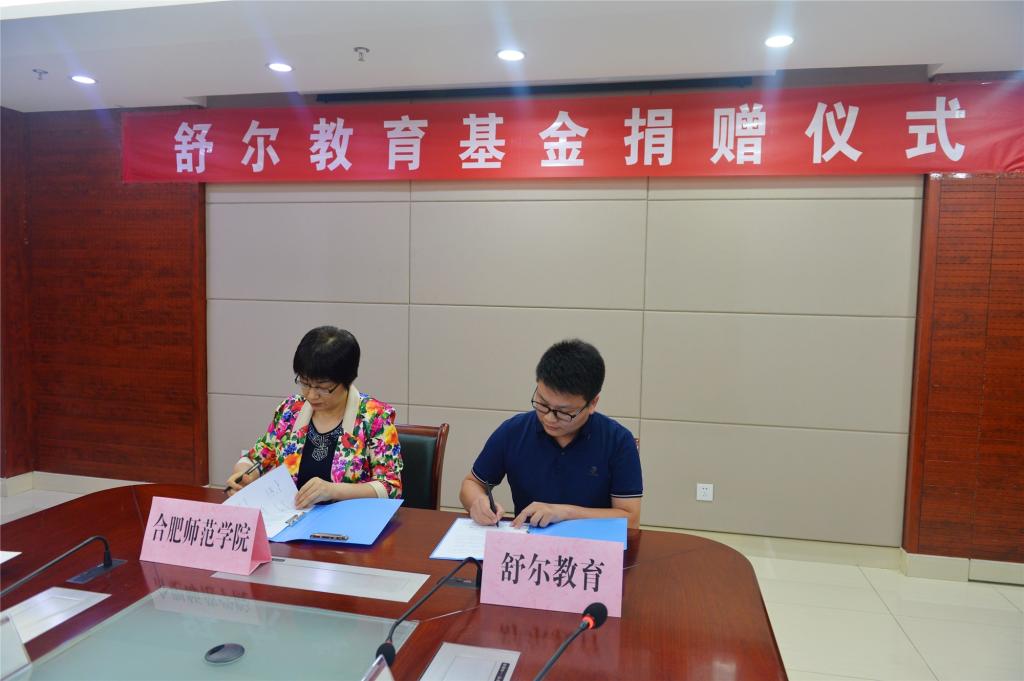 在一片热烈的掌声中,方东玲、田冬冬分别代表beat365在线唯一官网、舒尔教育科技(合肥)有限公司共同签订了“舒尔教育基金捐赠协议”。