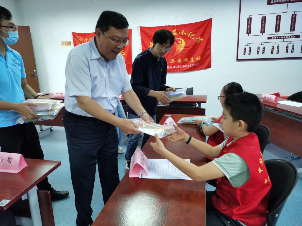 徐成钢现场为小学员们颁发了“中华公益小记者证书”,与小学员及学员家长们进行了亲切的交谈,赠送了画笔画本等学习用具并祝小学员们学习进步,快乐成长。社区为学堂的“小先生们”颁发了志愿者证书。(艺术传媒学院:戴玉佩、郑九州)
