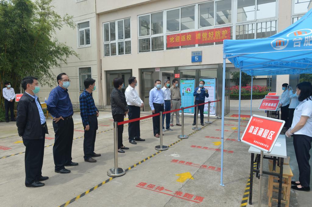 本网讯 学院2020年春季学期第一批次学生即将返校,为进一步提高疫情防控和应急处置能力,确保师生和校园公共卫生安全到位,根据学校疫情防控工作总体安排,5月15上午,学院组织开展学生返校准备工作大巡查。院疫情防控工作领导小组组长、党委书记徐成钢,党委副书记、院长方东玲,疫情防控工作领导小组副组长、院领导李进华、吴昕春、谢阳群、姚本先、曹卓良、徐文林深入锦绣校区,全面检查学生返校各环节准备工作。院疫情防控工作领导小组各成员单位主要负责同志参加检查。