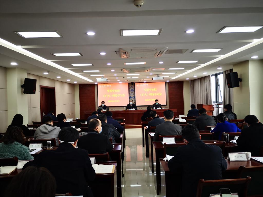 本网讯 3月16日下午,学院举行党委中心组扩大理论学习会。党委书记徐成钢主持会议。党委理论学习中心组成员出席会议,各院系级党委(党总支)、直属党支部书记,各学院院长、各部门主要负责人参加会议。会议严格落实学院疫情防控工作要求,对全体参会人员进行会前测温,并要求佩戴口罩、错开距离就座。