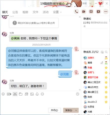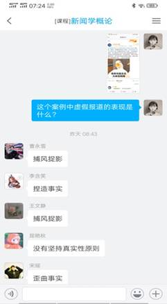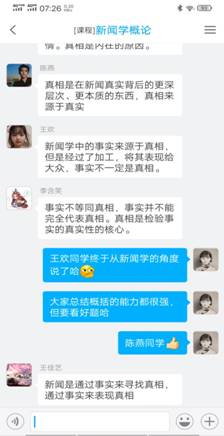 二是结合教学知识点和疫情精心准备每节课的讨论话题。每节课给学生安排一节课的教学视频观看任务,留下一节课的时间带领学生进行教学重难点的深度讲解和答疑。通过精心设计与疫情相关的讨论话题,让学生在学习教学视频后真正理解、掌握教学重难点。在《新闻学概论》课程中,当学生学习了“真实性原则”教学视频后,选择疫情中出现的虚假新闻作为案例,请学生探讨新闻虚假的类别、虚假的原因及改进的措施,进而与学生讨论新闻中事实与真相的关系、学生对“真实有限性”的认知等。在《广告学概论》课程中,当学生学习了“广告与经济的关系”教学视频后,与学生深入探讨了疫情对广告的影响等话题。我认为在网络教学中,设计话题讨论非常重要,话题需要学生愿意谈、有话谈,通过讨论,学生能够回忆起相应的教学知识点,以达到加深学习记忆的效果。