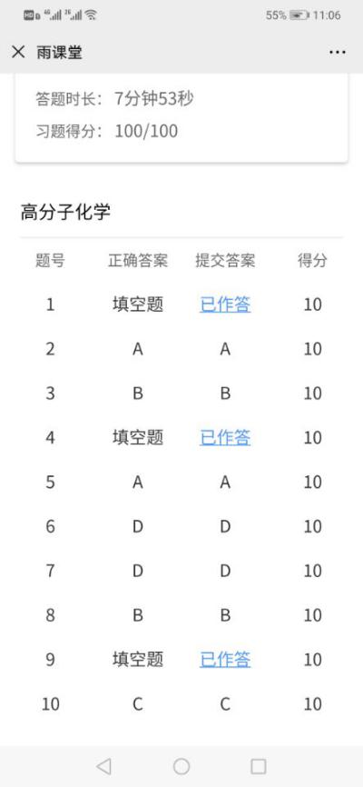 一是利用雨课堂帮助学生实现课前的预习。《高分子化学》是化工专业开设的一门双语教学课程。我在课前及时发布课程相关英语专业词汇的讲解和课程相关的视频,让学生对于课程相关词汇有充分的了解,并通过视频学习高分子化学课程中的相关概念和重点内容。