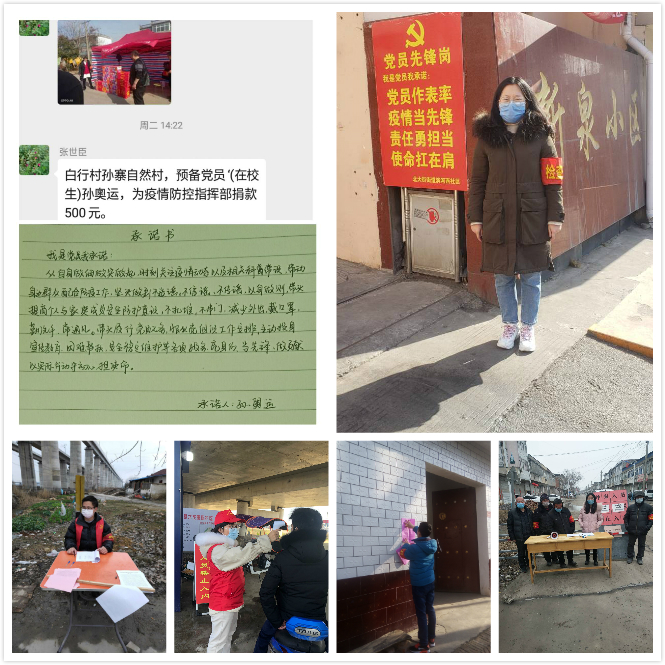当好疫情防控的引导员。作为电子信息工程学生支部书记,他在支部提出“疫情在、党员上”,倡导学生党员积极参与志愿活动,参与抗疫工作。一方面,他联合学院支部共同开展党员倡议活动,勉励学生党员在紧急时刻更要发挥起先锋模范作用;另一方面他号召学生党员充分配合当地党组织防疫工作、参与防疫志愿活动。电气学院金善港、殷璐华等同学作为志愿者加入当地村部防疫小组,向村民宣传防疫知识,在一线用实际行动诠释共产党员的使命。