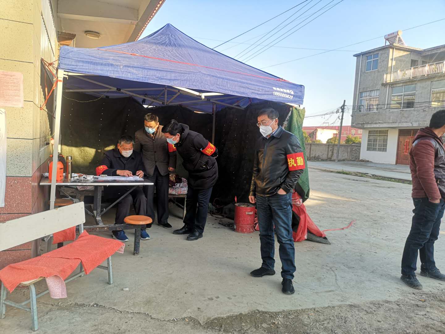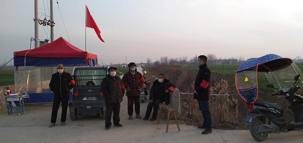 春节期间,驻村工作队利用电话、微信等方式共同商讨疫情防控工作,指导各劝返点成立临时党支部,集中力量对返乡人员进行彻底摸排,充分发挥基层党组织的战斗堡垒作用和党员的先锋模范作用,让党旗在防控疫情斗争第一线高高飘扬。到岗后,驻村工作队第一时间召开加强疫情防控工作会议,传达中央及省委“外防输入,内防扩散”要求,将疫情防控工作作为当前最大的政治任务,与村两委干部共同制订防控措施,作出具体安排。指导制作宣传横幅、宣传单,通过张贴公告、广播宣传、微信推送等多种形式宣传防疫知识,提高村民的防控意识与能力。组建志愿者机动分队,在各自然庄开展巡查,教育引导党员村民“早报告、戴口罩、勤洗手、拒热闹、少串门、不聚集”。驻村干部以身作则参与村内路口执勤、防疫宣传、机动巡查和卡点消毒工作,在工作中主动亮明身份,切实尽好职责,确保群众安全。