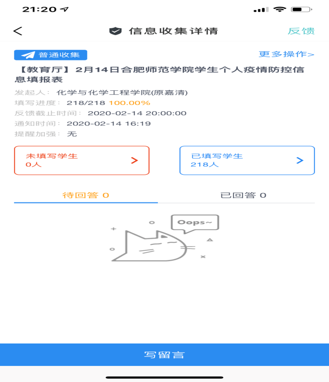 各守岗位,落实工作。辅导员们在自己的岗位上各司其职,带领班级防控疫情骨干,对接好自己所带年级、班级学生,排查学生寒假期间外出轨迹,筛查过往疫区的情况。大家利用辅导猫、QQ群、电话等与学生们联系,特别是落实与身在省外学生联系的常态化,征询学生生活状况、防控状态等。
