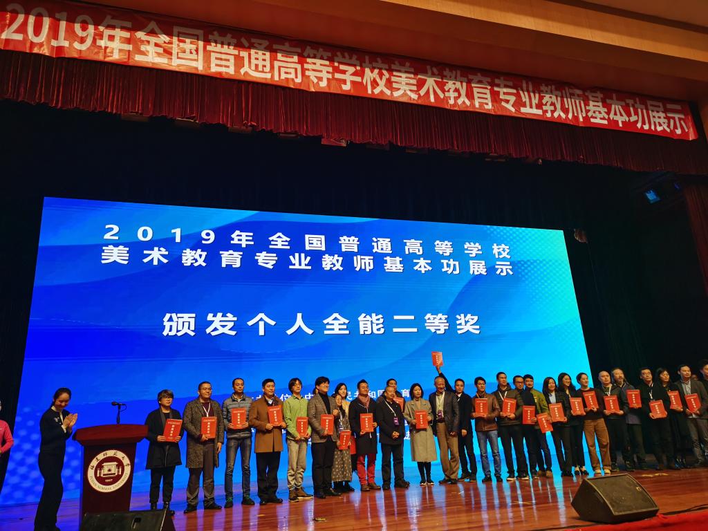 2019年全国普通高校美术专业教师基本功展示分为实践组和理论组两个组别,每组分设教学展示、专业能力展示、经典作品赏析三个项目。在本次展示活动中,beat365官网艺术传媒学院代表队教师取得了优异成绩,胡亮老师获得实践组个人全能二等奖、实践组专业能力展示单项奖,马晴老师获得理论组经典作品赏析单项奖,韩岩岩老师获得实践组教学展示单项奖。