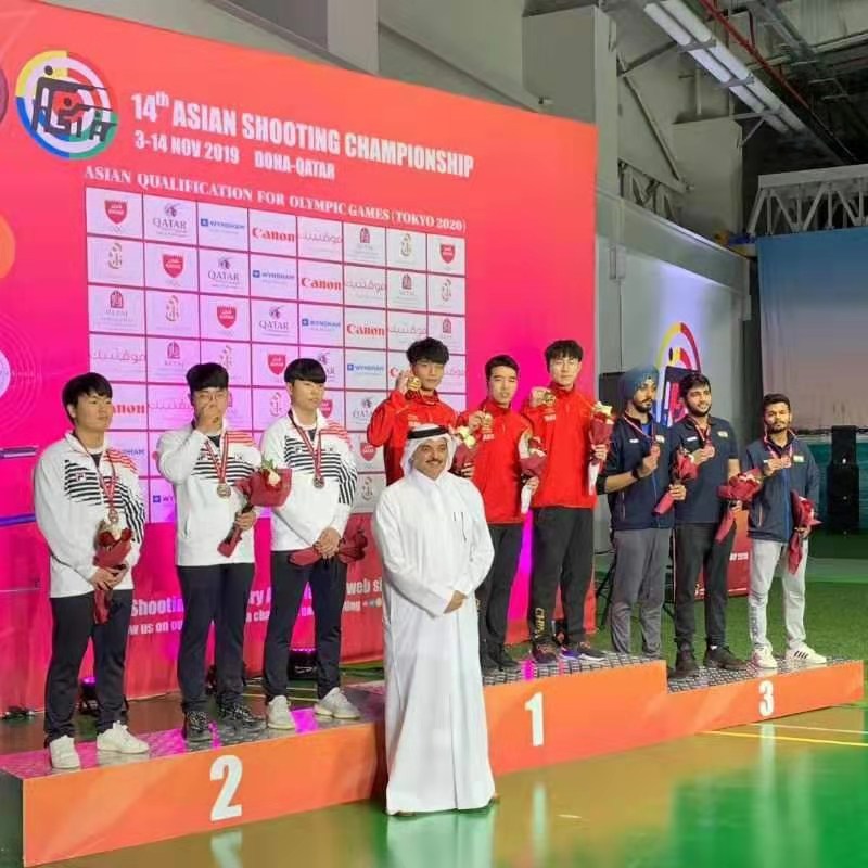 本网讯 近日,第十四届亚洲射击锦标赛在卡塔尔多哈举行。在男子速射比赛中,我院2017级体育专业(现役运动员)班夏琦同学与国家队队员夺取男子速射团体冠军。在2019年7月举行的德国世界杯(青年组)射击比赛上,夏琦同学发挥出色,夺得25米男子运动手枪速射项目个人金牌。