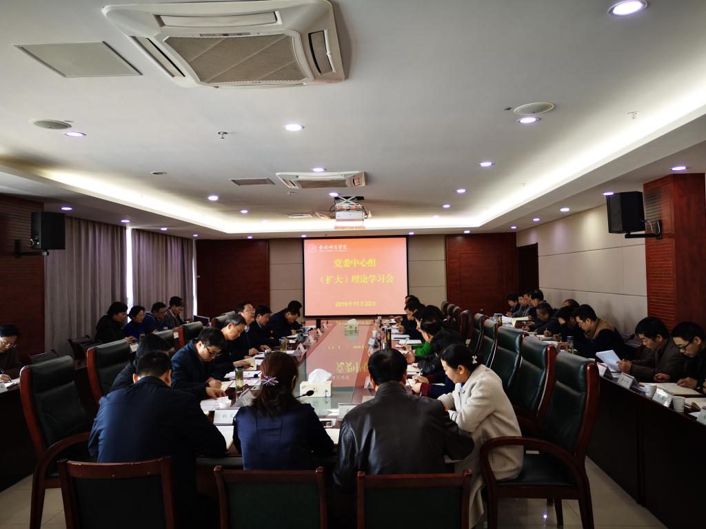 本网讯 11月22日上午,党委理论学习中心组在锦绣校区行知楼第二会议室召开扩大学习会,专题学习党的十九届四中全会精神。党委书记徐成钢主持会议。党委理论学习中心组成员出席会议,各党总支、直属党支部书记,各学院院长、各部门主要负责人参加会议。