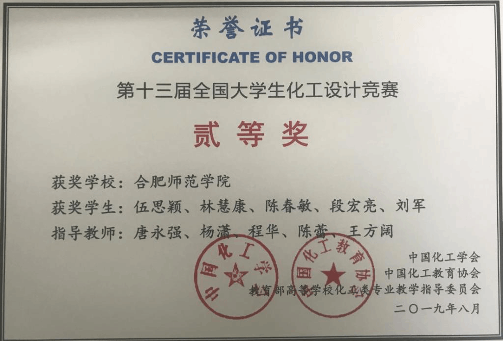 据悉,全国大学生化工设计竞赛由中国化工学会、中国化工教育学会、教育部高等学校化工类专业教学指导委员会联合举办,是国内化工类专业水平最高的学科竞赛。(化学与化学工程学院:唐永强)