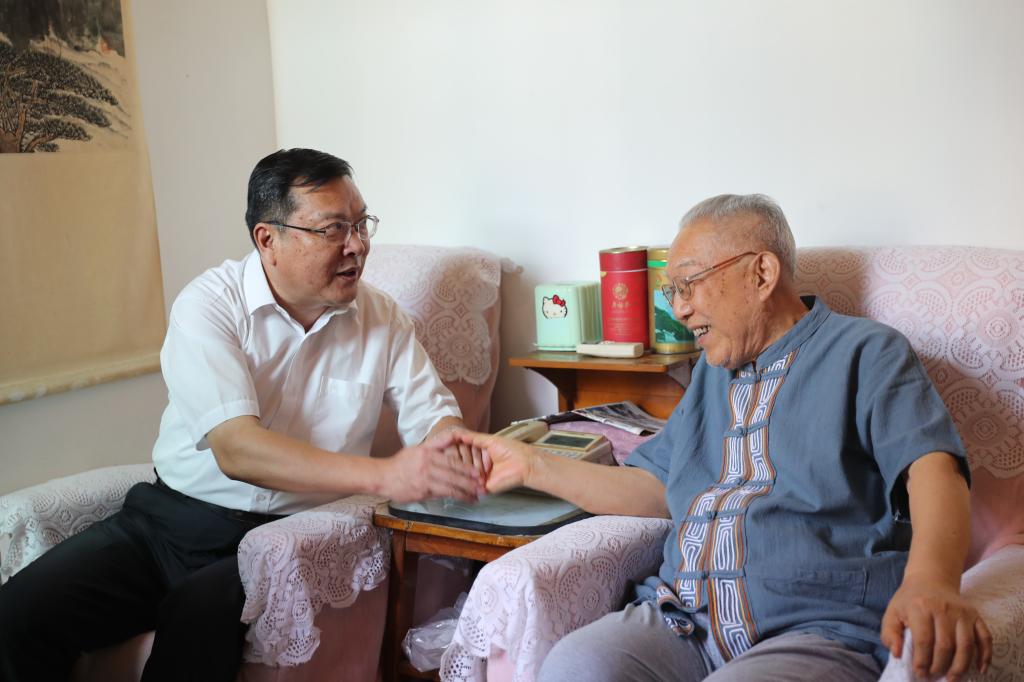 徐成钢先后来到离休干部、原党委书记李东方、原副院长薛增友家中,与他们一起回顾新中国成立70年来的伟大成就,一起分享中华人民共和国成立70周年的喜庆祥和。孙道胜先后看望了原总务处长黄佩琛、原纪委书记檀香元,感谢他们为学院发展做出的积极贡献。