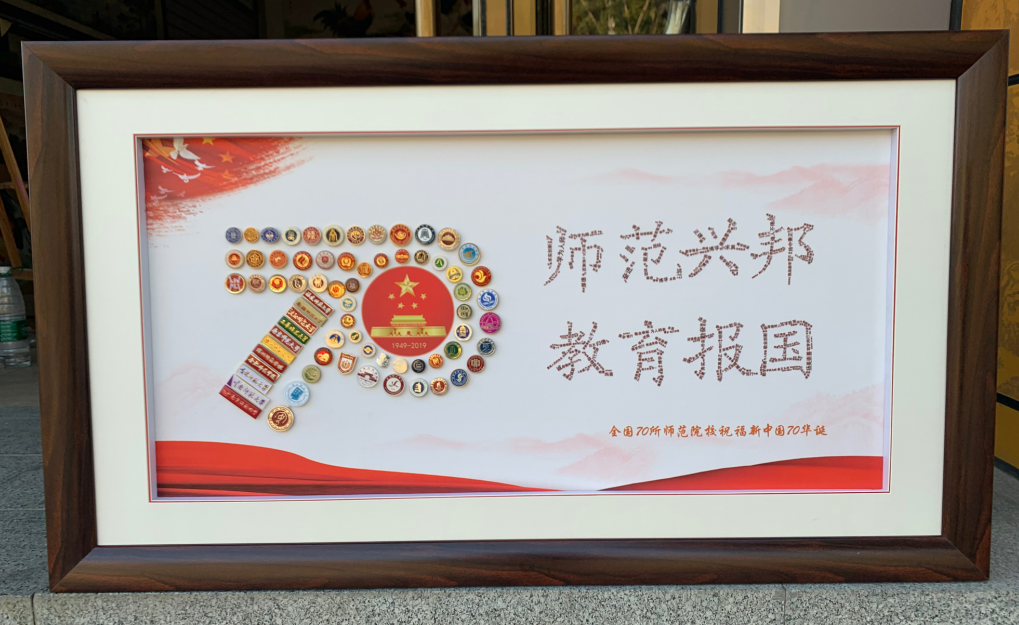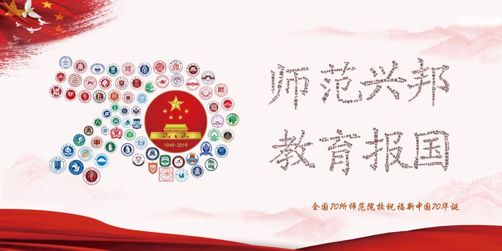 在全国师范院校“祝福新中国,一个不能少”校徽校训拼图纪念及H5环节,70所师范院校校徽组合拼出“70”图案,并用所有学校校训组合而成“师范兴邦、教育报国”字样。 70所、70年,两个“70”彼此呼应、意义深远。全国70所师范院校人不忘初心、牢记使命,大家同频共振、一齐发声,讲好大国师范故事,塑造大国师范形象,为新中国70华诞送上属于师范院校的独特祝福!