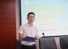 徐成钢代表学院致辞,他简要介绍了学院办学概况,指出对全体研究生新同学的到来表示热烈欢迎并提出殷切希望。
