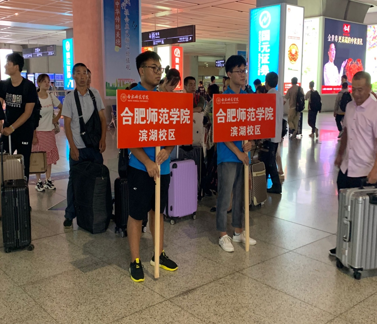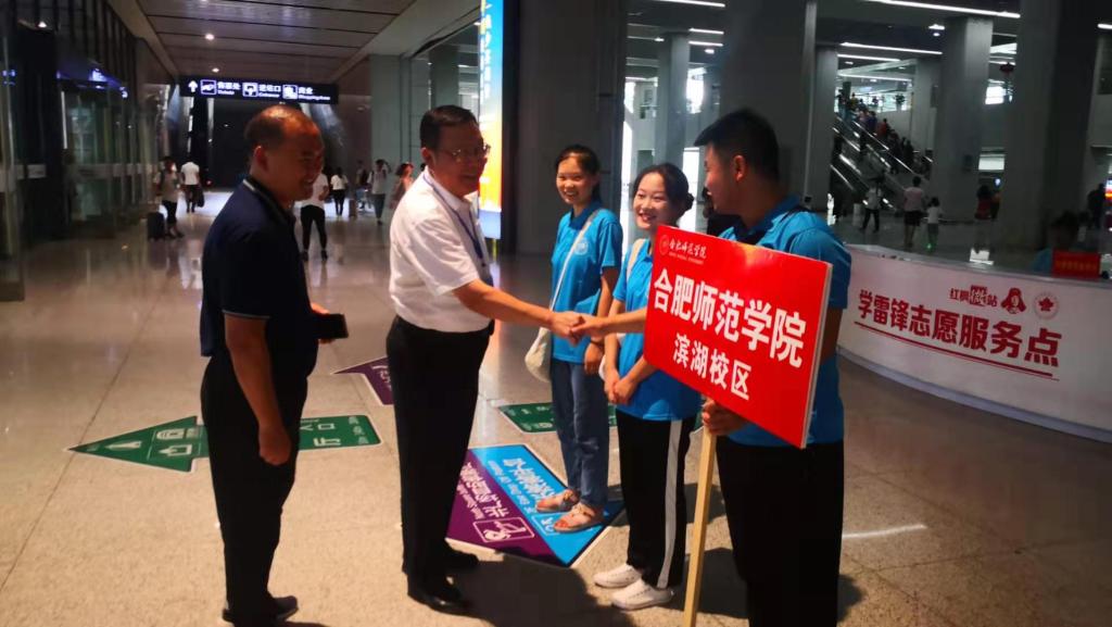 6日早五点半,志愿者们就前往合肥南站、火车站、滨湖校区展开接送新生和报到引导工作。从出站口到停车场,一路上遍布迎新志愿者们的身影。