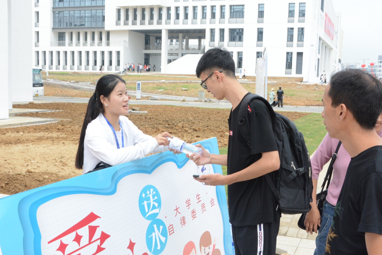 新生们从大学生自律委员会的志愿者手中接过免费的爱心矿泉水,脸上洋溢着笑容。“真的太贴心了,学长学姐们帮我拿行李,还送给我们免费的水,在送来一丝清凉的同时,让我感受到由心底里涌出的暖意。”一位新生说道。文学院马梦琦同学主要负责回收新生的助学贷款回执单,指导他们填写相关表格。马同学表示,一天下来是真的很累,但还是蛮值得的!她说:“看到学弟学妹们来报到,就想到了去年自己入学的情境,感触很深。我希望学弟学妹们能够在合师度过有意义的四年。”